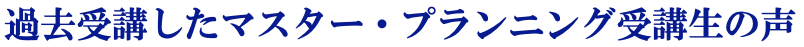 過去にマスター・プランニングを受講した日本と海外の受講生のMPL受講の感想とこれから参加を検討しているあなたへのメッセージを紹介します。